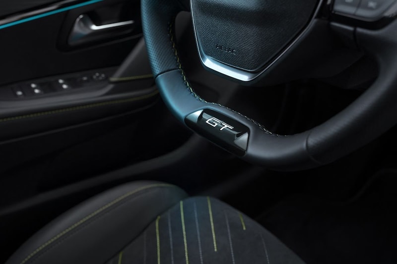 Peugeot 208 GT | Armsteunen op de voorportieren bekleed met kunstleder met groen sierstiksel (GT-Line) | Bandenreparatieset | Bandenspanningcontrolesysteem