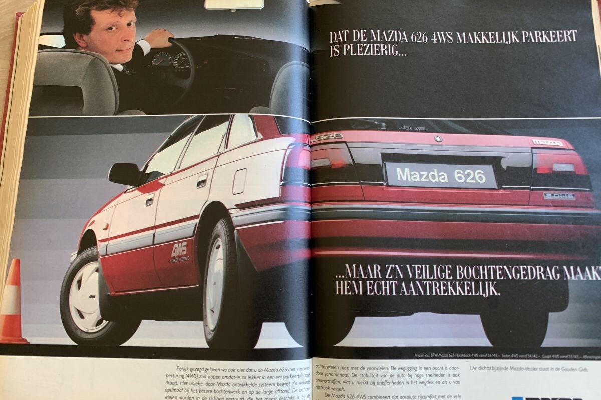 Heel toepasselijk bij het dossier over auto-inbraken is de grote advertentie voor autoradio's: ironisch. De grootste advertentie over een auto is die van de Mazda 626. De vierwielbesturing (4WS) wordt nadrukkelijk belicht. Hierdoor moet er gemakkelijk met de Mazda geparkeerd kunnen worden, maar zijn veilige bochtenwerk maakt het systeem pas écht aantrekkelijk.