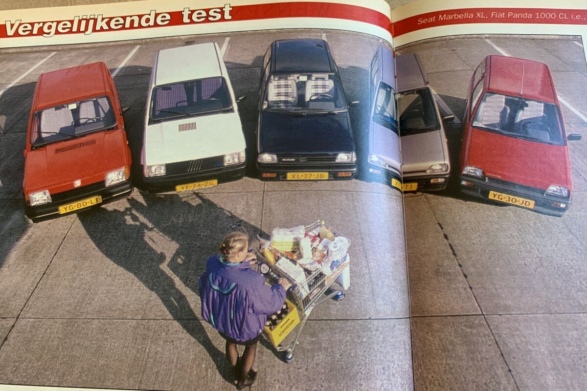 Waar het A-segment nu met uitsterven wordt bedreigd, beleeft het segment van de kleintjes begin jaren 90 juist zijn bloeitijd. In een heuse multitest nemen vijf stadsauto's het tegen elkaar op: de Seat Marbella, Fiat Panda, Suzuki Alto, Daihatsu Cuore en Subaru Mini Jumbo. Op de Panda na allemaal modelnamen die reeds verdwenen zijn. Grappig is het vergelijk van de Panda met de soortgelijke Marbella: de Panda is beduidend moderner dan zijn Spaanse 'neefje'. Logisch, want de kleine Spanjaard borduurde voort op de pre-facelift Panda. De Subaru heeft de hoogste topsnelheid (140 km/h!), de Marbella is het goedkoopst (v.a. 12.595 gulden).
