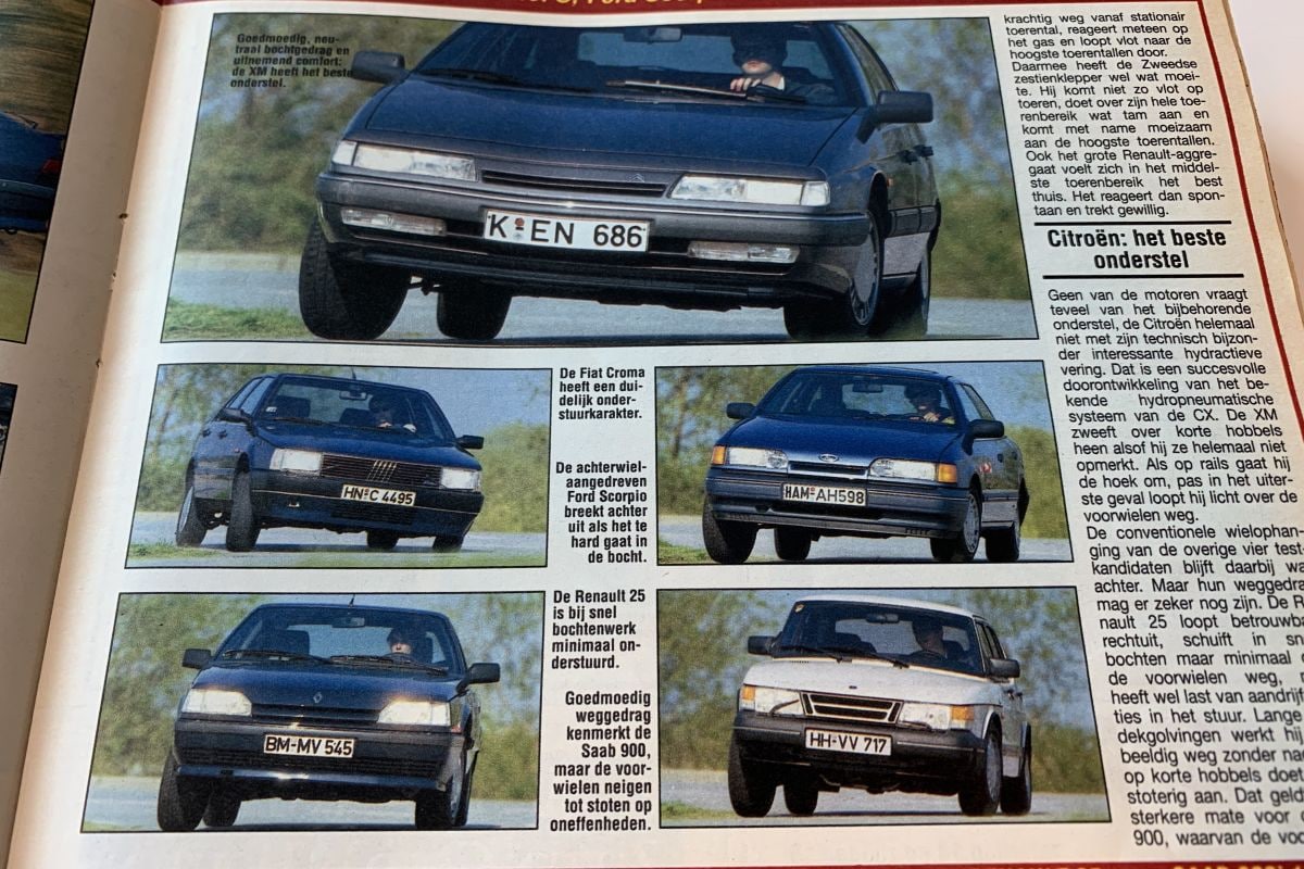 Een test voor de liefhebber: vijf heerlijke riante sleeën met vijf deuren. Twee Franse, één Zweed, één Italiaan en één Duitser. In vergelijking met nu opereerden de Citroën XM, Renault 25, Saab 900, Fiat Croma en Ford Scorpio in een segment dat nu vrijwel is opgegeven. Zonde, want de luxe auto's weten nog steeds te imponeren. De Ford is de enige achterwielaandrijver, de Citroën heeft het beste onderstel maar is ook dorstig en luidruchtig, de Saab is wat pitloos en bij de Renault valt de hoge tildrempel op. De kaarten zijn nu heel anders geschut: Citroën heeft vrijwel alleen maar SUV's, de Renault Talisman wordt naar verluidt binnenkort uitgezwaaid, de Ford Mondeo weet nog maar weinig mensen aan te spreken en Fiat en Saab ... Tja.