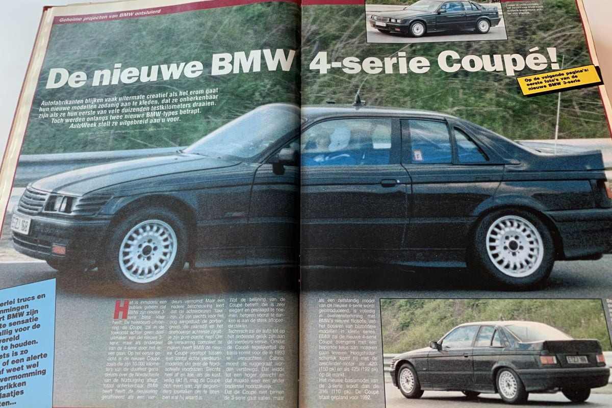 Groot nieuws, want de gloednieuwe 3-serie is - al dan niet gecamoufleerd - op de gevoelige plaat vastgelegd. Naast de vierdeurs sedan rijdt ook een driedeurs coupé aan de lens voorbij. Destijds gokken we op de komst van een heuse 4-serie coupé. Een nieuwe naam, want tot dan heeft BMW die nog niet in gebruik. Dat blijft dan echter ook nog even, want de geschiedenis leert dat BMW de driedeurs gewoon 3-serie (E36) Coupé noemt. BMW weet beide modellen flink in te pakken met extra aanzetstukken en plakfolie. Het duurt nog tot 1992 voordat BMW de nieuwe 3-serie presenteert. In 1990 wordt beweerd dat er geen Touring zou verschijnen, maar gelukkig kwam die uiteindelijk ook gewoon. In 1990 had niemand waarschijnlijk verwacht hoe een 4-serie er dertig jaar later daadwerkelijk uit zou komen te zien. De nu al spraakmakende auto krijgt van BMW immense nieren.