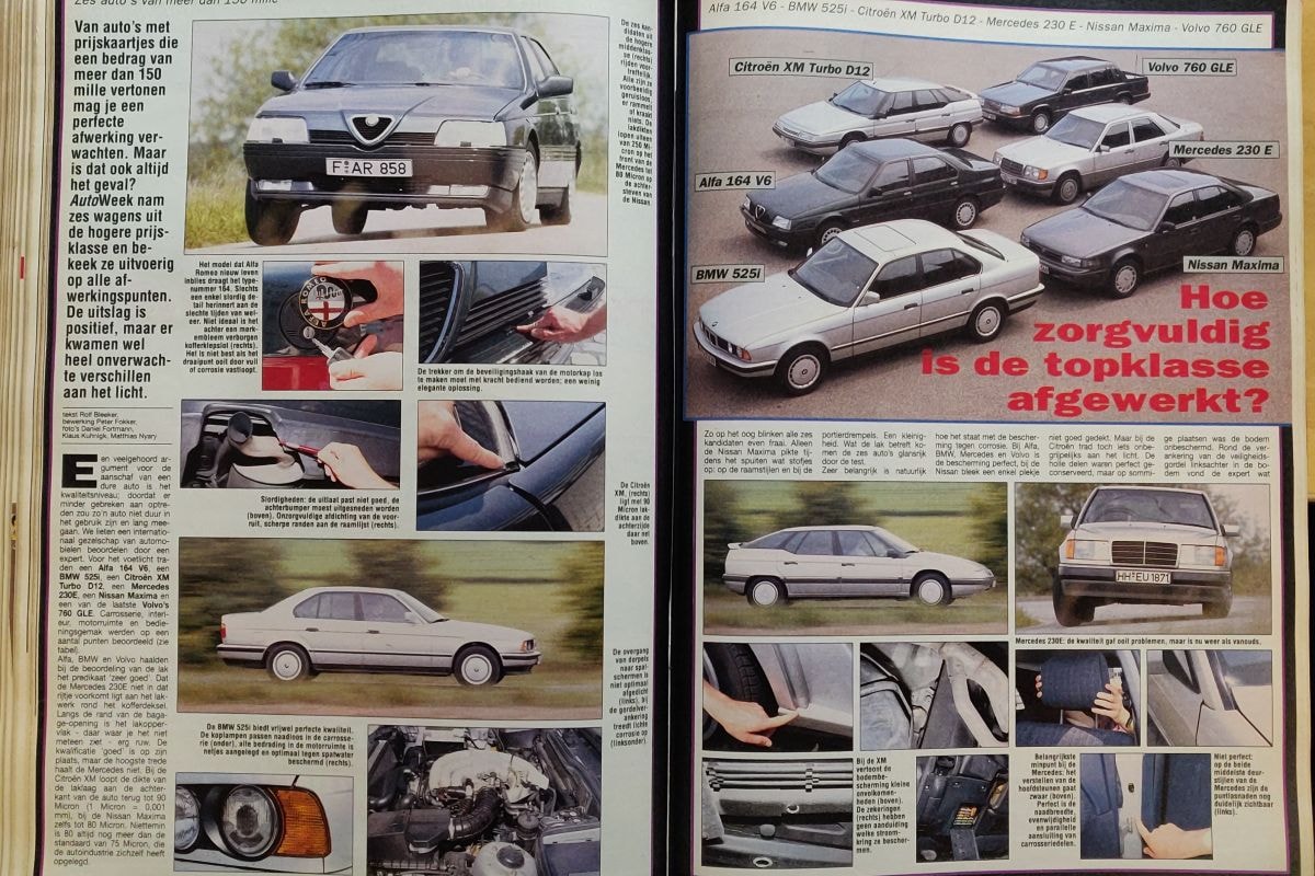 Hoewel het begin deze eeuw soms leek alsof de guldenprijzen 1 op 1 overgezet werden naar prijzen in euro's en we zodoende veel koopkracht inleverden, moet gezegd worden dat de guldenprijzen van sommige topsedans in 1990 ook al stevig waren. Auto's als de Citroën XM, Mercedes E-klasse en Alfa Romeo 164 vielen destijds in de categorie 'boven de 150.000 gulden'. Voor dat geld wilde je natuurlijk wel een auto die piekfijn in elkaar stak. We zochten uit of de auto's een verzorgde indruk maakten. Alle auto's werden qua kwaliteit op het niveau van hun prijs bevonden, maar de Alfa Romeo 164 viel in positieve zin op, vanwege het feit dat-ie qua gebruiksgemak en afwerking niets meer liet zien van de eerdere mindere reputatie van het merk. De Volvo 780 viel - als het überhaupt al tegenviel - dan eerder wat tegen.