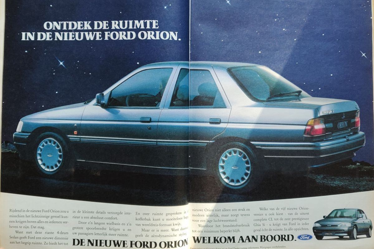 Een extra grote C-segmenter met kont. Dat is een fenomeen dat wel heel duidelijk niet meer in de huidige tijd thuishoort. In 1990 was het echter nog de gewoonste zaak van de wereld dat je een dergelijke auto nieuw kon kopen in Nederland en dan kon je bijvoorbeeld bij Ford terecht. De Orion, in wezen een Escort met een flink achterste, moest het perfecte alternatief zijn voor wie een Escort wat te krapjes vond. Dat de Orion de naam van een sterrenbeeld droeg, was dan ook niet zomaar: in de Orion draaide alles om ruimte.