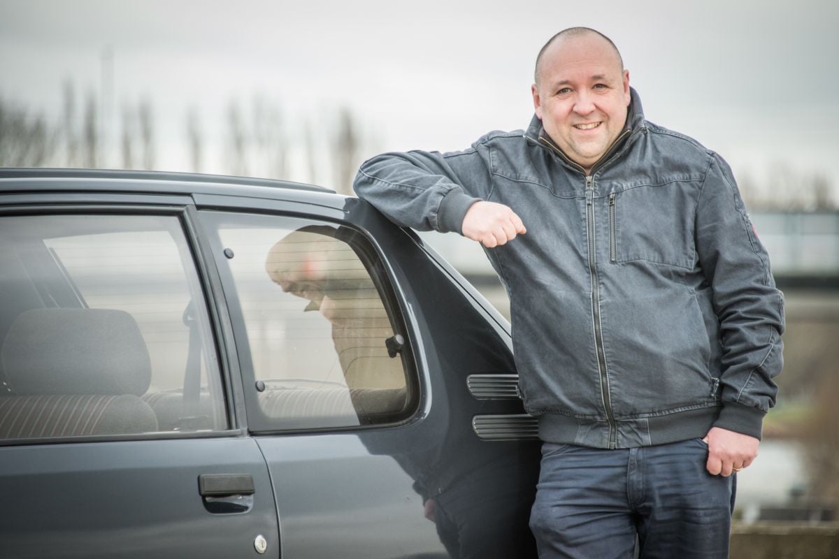 Vertederd kijkt John Bacon (48) naar zijn Peugeot 205 1.4 XS uit 1987. “Het is eigenlijk een soort teletijdmachine”, lacht hij. “Deze auto is een stukje geschiedenis. Hij vertegenwoordigt precies driekwart van mijn leven.” Die berekening klopt als een bus, want toen de Peugeot in 1987 voor het eerst de openbare weg op mocht, was John twaalf jaar oud. Hij was bovendien getuige van dat mooie moment, om precies te zijn vanaf de achterbank: “Onze pa kocht deze Peugeot in 1987. Hij was toen hagelnieuw, mijn vader was reuze trots op zijn nieuwe auto en ik zat in het midden van de achterbank te kijken hoe mijn vader ermee naar huis reed.” Dat John autoliefhebber zou worden, was eigenlijk al voor zijn geboorte bepaald. “De liefde voor auto’s gaat bij ons van generatie op generatie”, zegt John. “Mijn grootvader was monteur en een groot autofanaat. Die liefhebberij ging over op mijn vader, die het weer aan mij doorgaf. De eerste auto die ik me van onze pa herinner, is een Ford Capri. Toen mijn ouders een huis gingen bouwen, moest die plaatsmaken voor wat zuinigers, dus kwam er een Mini. Daarna kwamen er twee Ford Fiesta's, eerst een van de eerste generatie, daarna een van de tweede generatie. Daar vond ik trouwens niks aan. Die afgeronde neus heb ik nooit een succes gevonden.”
