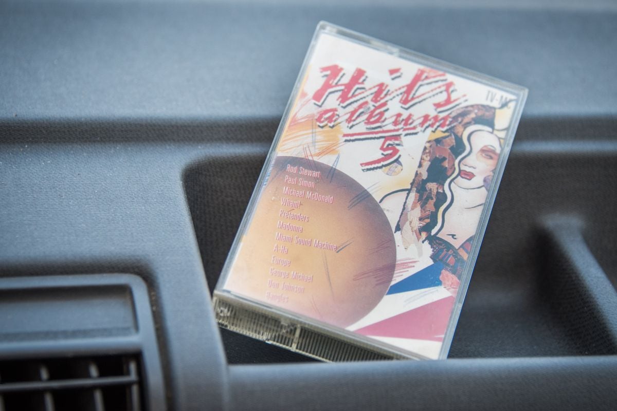 Voor de jongeren onder ons: dit is een cassettebandje. Dat is grijsgedraaid in de Peugeot 205.