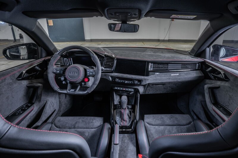 De binnenkant van de Audi A1 wordt vrijwel in het geheel met alcantara bekleed. Van het stuur, de deurpanelen tot aan het dashboard: alles is van een laagje alcantara voorzien. Het blijft natuurlijk niet alleen bij cosmetische opsmuk. Ook onderhuids is de A1 van voor naar achteren aangescherpt. Abt legt een geheel nieuwe 2,0-liter TFSI in het vooronder van de Audi. De motor is nu goed voor “meer dan 400 pk”. Middels een geheel nieuwe uitlaatsysteem brult de A1 van zich af. 19-inch wielen zorgen voor een beter contact met de weg. Van deze A1 wordt, zoals je wellicht kunt verwachten, maar één exemplaar gemaakt.
