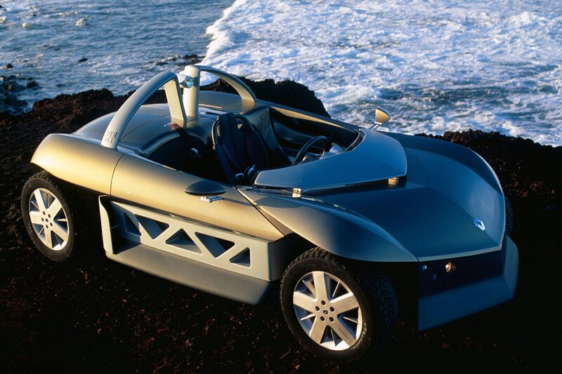 Onze derde vreemde vogel is de Renault Zo, inderdaad zonder -e aan het eind. Wie de excentrieke Renault Sport Spider al iets te veel van het goede vond, kwam in 1998 helemaal voor een verrassing te staan. De Renault Zo was gebaseerd op laatstgenoemde, maar leek gekruist te zijn met een heuse maanauto. Ook op de Zo ontbrak een echte voorruit, wat naast vliegen tussen de tanden voor stapels rijbeleving had moeten zorgen. Het bleef helaas bij een vingeroefening, de Zo heeft nooit het levenslicht mogen zien. Rijden op asfalt? Saai! Waarom niet over onverharde wegen touren met de wind in je haren? Dat moeten de Franse designers aanvankelijk gedacht hebben. Een hydraulisch systeem kon de rijhoogte namelijk van 150 mm laten toenemen tot 280 mm. Speciaal schoeisel van Michelin was zowel geschikt voor verharde als onverharde wegen. De Zo stierf een stille dood en ook zijn geestelijk vader, de Sport Spider, zagen we na 1999 niet meer terug.