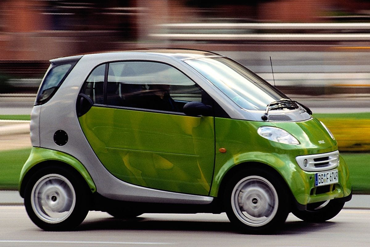 De oorspronkelijke Smart CityCoupé: slechts 2,54 meter lang en even breed als hoog.