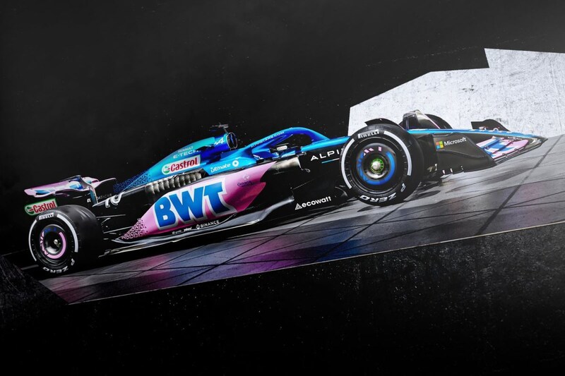 Alpine toont de derde Formule 1-auto uit zijn geschiedenis; de A523. Het team dat tot 2021 nog onder de vlag van Renault opereerde gaat duidelijk voor herkenbaarheid met de kleurstelling. Opnieuw is het een mix van Alpine-blauw en het roze van hoofdsponsor BWT. In Bahrein en in Australië rijdt Alpine overigens met een geheel roze versie. Het ziet er verder allemaal vertrouwd uit, al valt wel op dat de Franse vlag achterop de motorkap weg is. Mogelijk is het allemaal al Frans genoeg met twee Franse coureurs in een Frans team. Pierre Gasly volgt dit jaar immers de naar Aston Martin vertrokken Fernando Alonso op. Hij deelt het team met Esteban Ocon.