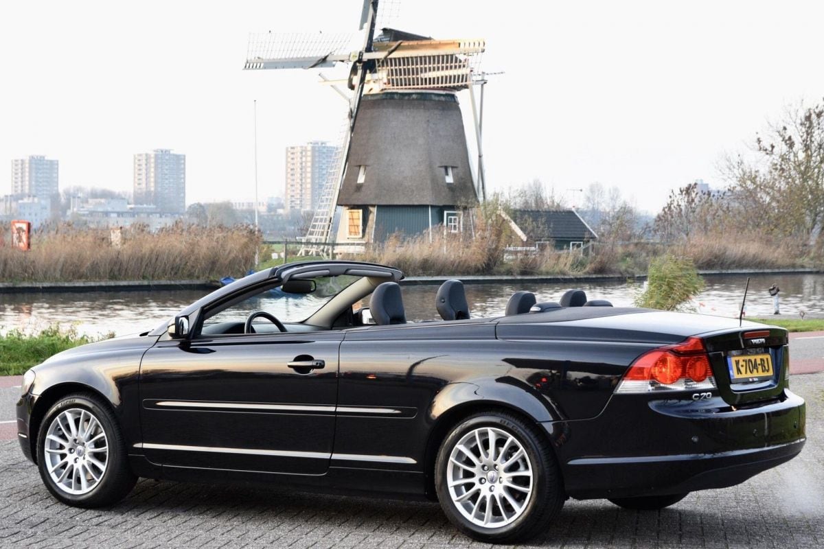 De eerste generatie van de Volvo C70 was zowel als coupé als cabriolet leverbaar. Voor de tweede generatie besloot Volvo om het roer om te gooien en de twee carrosserievarianten te combineren in één auto. In 2006 kwam de C70 met stalen klapdak op de markt. Dit was tevens de laatste cabrio van Volvo, want in 2013 ging het model uit productie om vervolgens niet meer terug te keren. Dit exemplaar komt uit 2006 en is dus eentje uit het eerste bouwjaar. Hij heeft 197.761 kilometer op de teller en is getooid in een zwart-op-zwarte samenstelling. Opvallend voor een Volvo: hij heeft géén stoelverwarming! Wat hij wel heeft, is een 2,4-liter atmosferische vijfcilinder onder de kap. Met 140 pk is dat zeker geen sprintkanon, maar met de ramen of het dak naar beneden kun je in ieder geval genieten van de karakteristieke roffel.