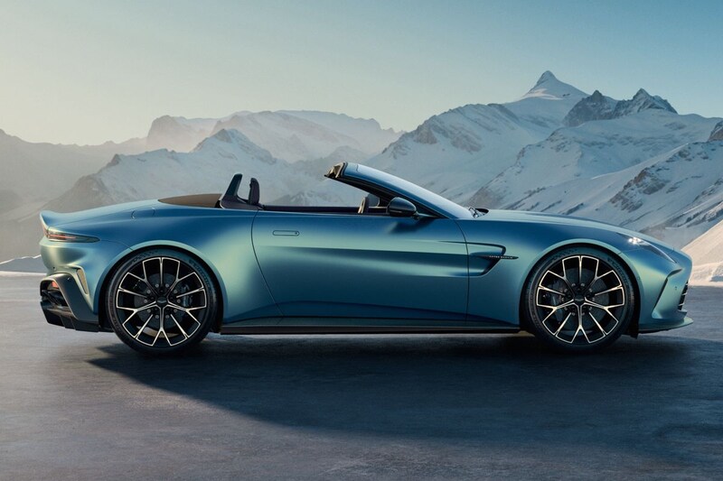 Evenals de dichte Aston Martin Vantage herken je de vernieuwde Roadster vooral aan zijn gewijzigde front. Daarin tref je ver naar achteren doorlopende koplampen en een enorme grille met verticale luchtsleuven aan weerszijden ervan. Het doet ons enigszins denken aan de snuit van de One-77. Het slechte nieuws is dat de V12 helaas niet terugkeert. Dat is vast geen verrassing. Aston Martin kondigde in 2022 al de laatste V12's Vantage aan. Wat blijft is de vierliter V8 met twee turbo's. Die van de planken van AMG afkomstige achtcilinder brengt 665 pk op de been en is daarmee 155 pk krachtiger dan de V8 in de pre-faceliftversie. Het koppel is toegenomen van 685 naar een heftige 800 Nm. In slechts 3,6 seconden lanceert de Vantage Roadster vanuit stilstand naar een snelheid van 100 km/h. Zijn topsnelheid ligt op 325 km/h. Schakelen gaat met behulp van een achttraps automaat van ZF en een elektronisch geregeld sperdifferentieel is standaard van de partij. Het stoffen vouwdakje laat zich bij een snelheid van maximaal 50 km/h in slechts 6,8 seconden openen of sluiten.