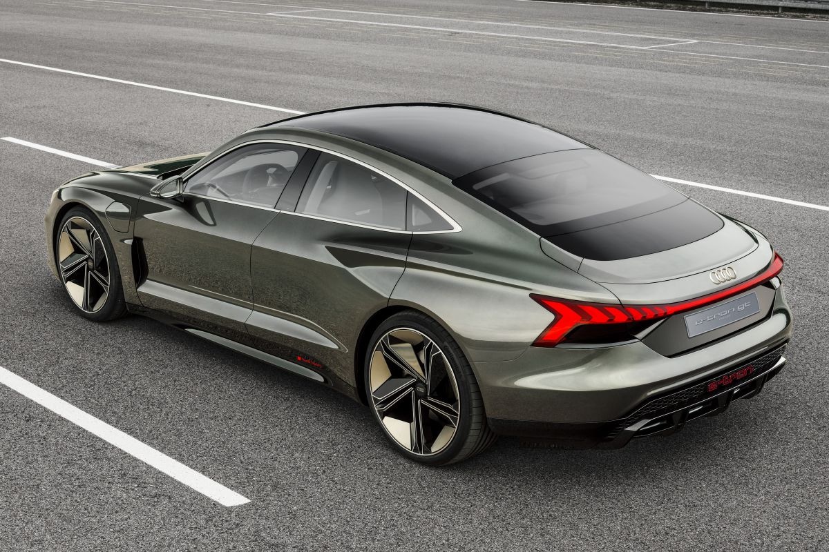 De E-tron GT, wiens designelementen volgens Audi de basis vormen voor alle toekomstige EV's van het merk, is een elektrisch model in de stijl van de A7 Sportback. De E-tron GT Concept was 4,96 meter lang en was daarmee op een haar na zo groot als die reeds bekende A7 Sportback. De E-tron GT komt in ieder geval als heftige RS E-tron GT, die dankzij vier elektromotoren 598 pk sterk is en dankzij overboost tijdelijk een piek van 646 pk en 830 Nm kan halen. De ongeveer 2,3 ton wegende RS E-tron GT moet in zo'n 3,5 tellen een snelheid van 100 km/h kunnen bereiken. De RS-versie moet zo'n 400 kilometer actieradius uit zijn 84 kWh grote accupakket kunnen persen.
