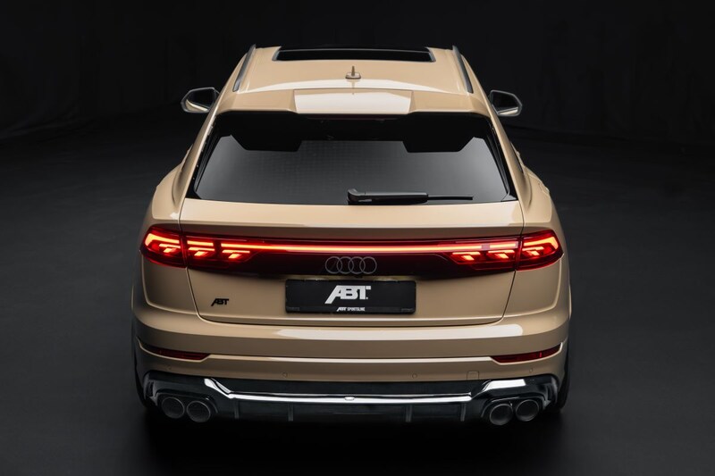Tuner Abt heeft de Audi Q8 al diverse keren aangepakt, maar de vorig jaar gefacelifte Q8 wist tot op heden aan de grijpgrage handjes van het bedrijf te ontkomen. Tot op heden, inderdaad. Abt trekt de trukendoos open en overlaadt de SUV maar wat graag met een flinke dosis uiterlijke extraatjes, maar wringt ook extra vermogen uit verschillende aandrijflijnen. We beginnen maar direct het meest uitbundige feestje. De van nature 507 pk en 770 Nm sterke 4.0 V8 van de Audi SQ8 is na kennismaking met de Abt Power Module S goed voor 650 pk en 850 Nm. Daarmee is -ie iets sterker dan de RS Q8 en bijna net zo sterk als de 666 pk sterke Lamborghini Urus S en Performante. Die Urus noemen we niet zomaar, Lambo's SUV deelt - net als de Porsche Cayenne, Volkswagen Touareg en Bentley Bentayga - zijn basis met de Audi Q8. Voor deze vermogensupgrade moet je €13.790 meebrengen.