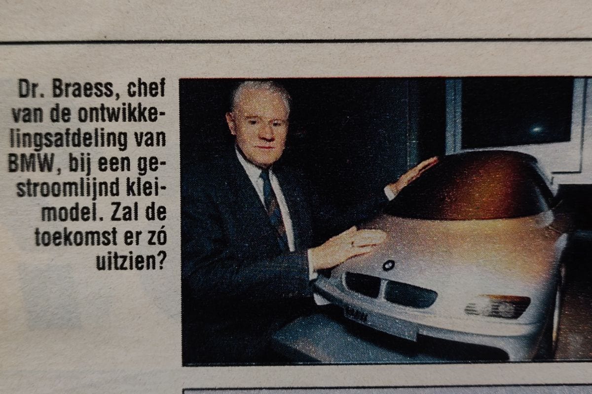 Speciale aandacht in de vooruitblik was er voor de toekomstvisie van BMW. Dat merk liet enkele studiemodellen zien, waaronder een 'gestroomlijnd kleimodel' waar ontwikkelingschef Dr. Braess trots naast poseerde. Het bijzondere koepelvormige dak haalde het productiestadium niet, maar je hoeft niet lang te kijken naar het kleimodel om er wat 7-serie E65 in te herkennen. De 'Bangle Butt-7' gaf dus 10 jaar voor z'n werkelijke onthulling al een eerste levensteken.