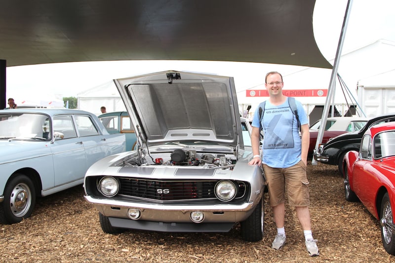 We treffen een dagdromende Leo Noordzij aan bij de Chevrolet Camaro op het Occasionpaviljoen: "Als ik hier te lang blijf staan, dan ga ik voor de bijl..."