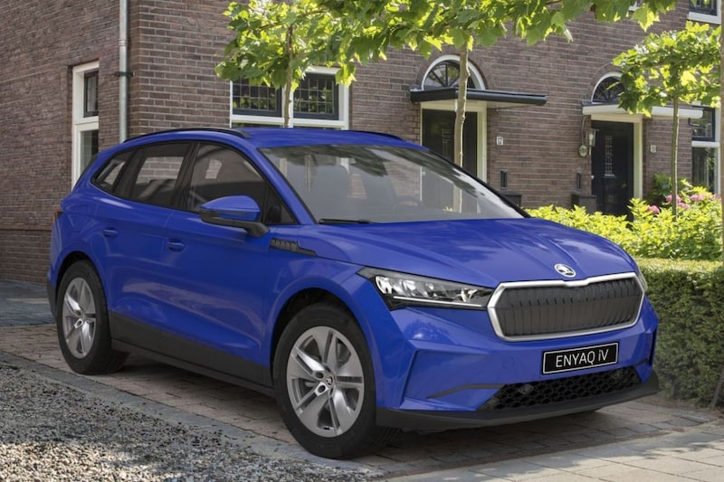 Waar de meeste automerken hun modellen standaard in het zwart of wit leveren, gooit Skoda het over een andere boeg. De enige gratis lakkleur op de Enyaq iV is namelijk het 'Energy Blue' op de afbeeldingen. Verder bestaat de keuze uit zeven andere metallic lakkleuren, die in de meeste gevallen een meerprijs hebben van €700. Alleen 'Velvet Red Metallic' moet €1.100 opbrengen. Wat de wielen betreft is de Enyaq iV overigens allerminst kinderachtig, want standaard rolt hij al op 19-inch lichtmetalen wielen. Optioneel zijn nog drie andere wieldesigns leverbaar, variërend van 19-inch tot 21-inch.