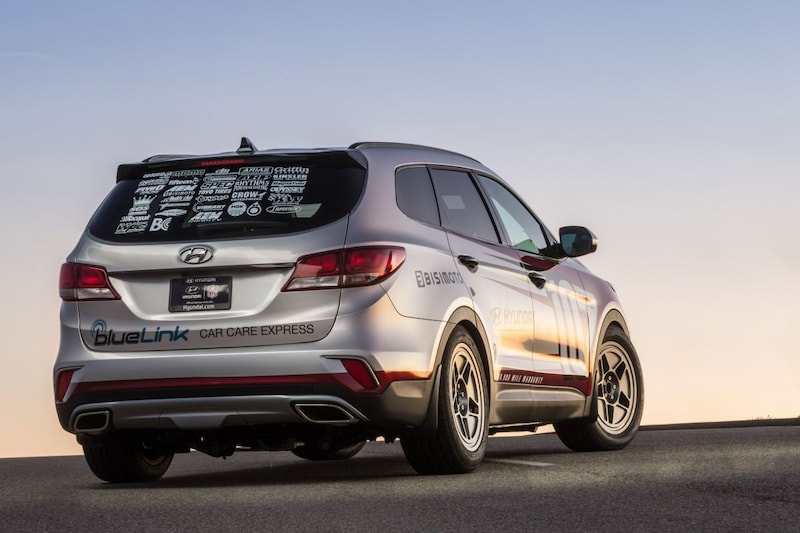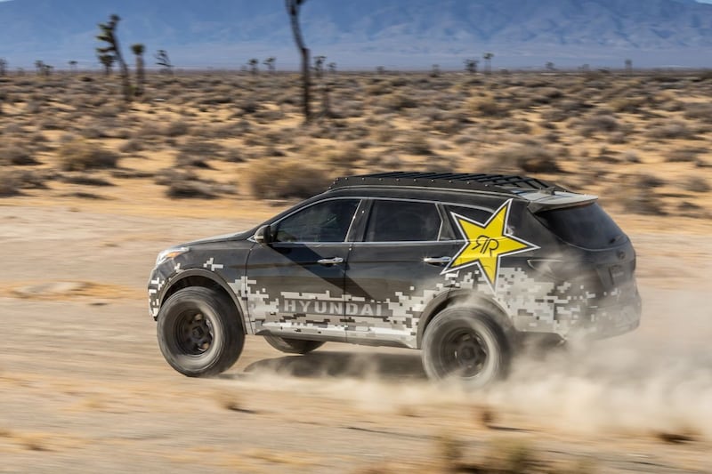 Verder zien we de auto's die Hyundai USA al middels een schets aan de wereld voorstelde. We hebben een 1.040 pk sterke Santa Fast gedoopte Sante Fe te pakken, worden getrakteerd op een Santa Fe met nitro die over ieder terrein moet kunnen denderen én zien een donkere Elantra die zo weggereden lijkt uit een raceklasse.