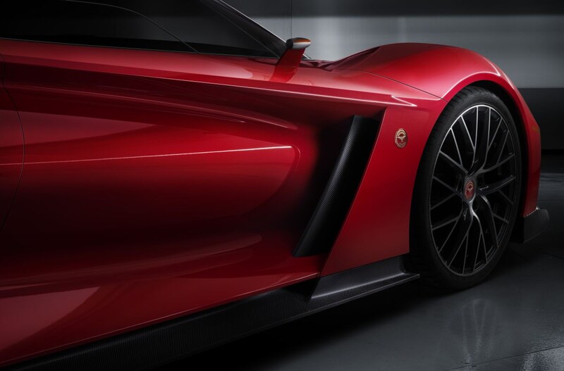 De Bizzarrini Giotto is doorspekt met designinvloeden die verwijzen naar het verleden. De carrosserie van de Giotto is volledig uit koolstofvezel opgetrokken en oogt behoorlijk wulps. Niemand minder dan Giorgetto Giugiaro werd opgetrommeld om de lijnen van de Giotto op papier te zetten. De Giotto heeft zijn krachtbron achter de voorstoelen liggen. En dat is er niet zomaar een. Hij krijgt een atmosferische V12, een mogelijk van Lamborghini afkomstige machine die is geknoopt aan een achttraps automaat. Technische gegevens volgen later, evenals daadwerkelijke foto's van de auto.
