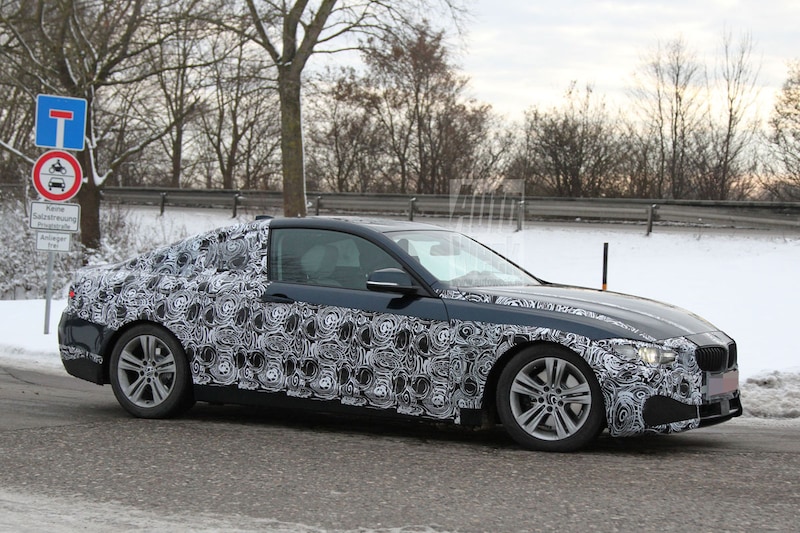 Zoals gebruikelijk worden de scherpe randjes van de conceptcar afgeslepen. We zien een 4-serie met velgen van subtieler formaat en een bravere achterkant. De stoere achterbumper moet op deze uitvoering het veld ruimen voor een gangbaarder gestileerd exemplaar. Het is niet ondenkbaar dat de bilpartij van de concept terugkeert op de dikkere uitvoeringen van het productiemodel. Gelukkig lijkt de voorbumper niet grondig onder handen genomen te zijn. Een geruststelling, het geeft de 4-serie namelijk een geheel eigen gezicht. Het camouflagewerk bedekt nog een behoorlijk deel van het lijnenspel, maar we verwachten geen wereldschokkende wijzigingen ten opzichte van het studiemodel.