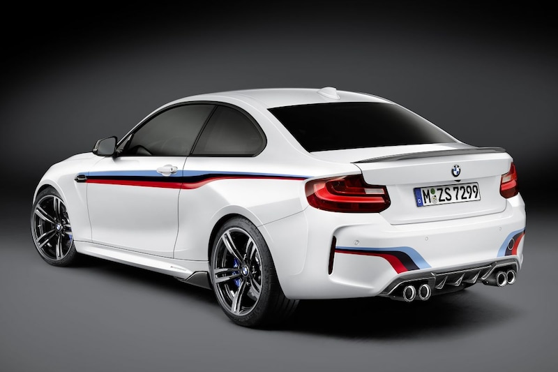 BMW levert de uitgebreide lijn opties en accessoires voor vrijwel alle BMW-modellen, en zelfs een heftig apparaat als de M2 moet eraan geloven. Het uiterlijk volgt het inmiddels bekende recept van koolstofvezel spoilerwerk en lekker donkere wielen. De striping in M-tinten valt het meest op, al is de auto natuurlijk ook zonder deze oorlogskleuren te bestellen. Het interieur wordt niet vergeten.