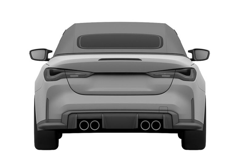 In de database van het Europese patentbureau (EUIPO) zijn namelijk de patenttekeningen van de M4 Cabrio opgedoken. Eerlijk is eerlijk, het uiterlijk zal niemand verrassen. Ook de dakloze versie van de M4 Coupé krijgt een agressieve snuit waarin een bumper met grote koelopeningen samen met de inmiddels bekende grote grille het beeld bepaalt. Op de voorschermen zijn de van de M3 en M4 Coupé bekende openingen zichtbaar. Onderaan de bilpartij, hoe kan het ook anders, de vier kenmerkende M-uitlaatuitstukken. Twee aan elke kant.