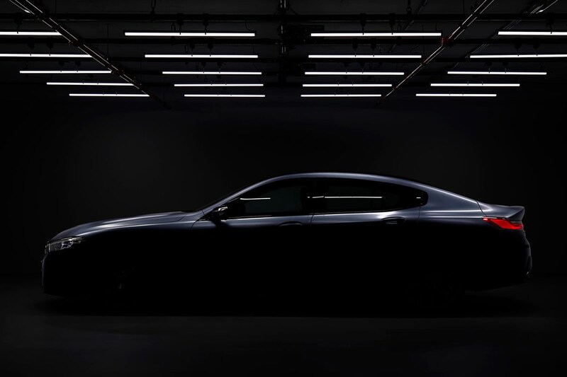 BMW laat een duistere afbeelding zien waar het zijaanzicht van de 8-serie Gran Coupé op is te zien.