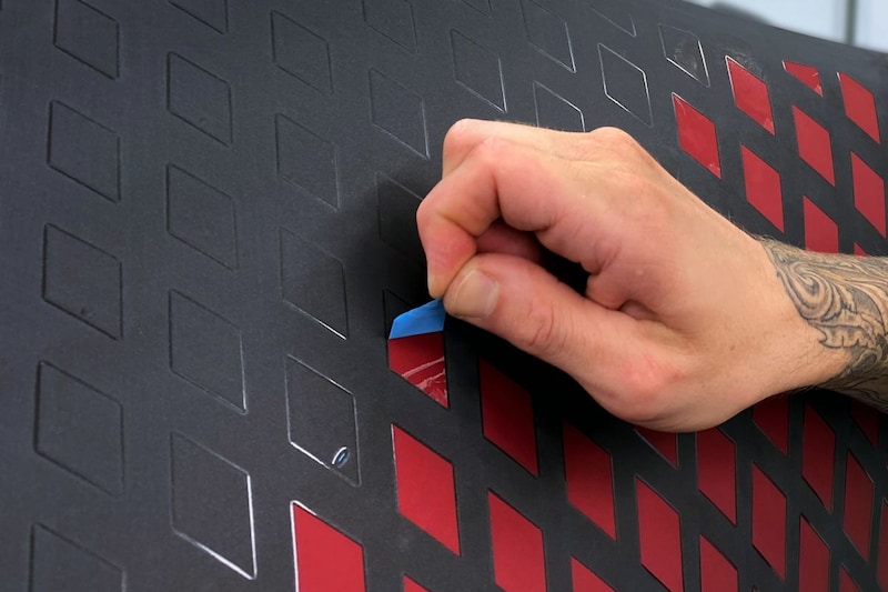 Het was volgens Bugatti een enorm tijdrovend proces om het zo perfect mogelijk te krijgen. Het ontwerp werd eerst op de computer ingetekend, maar in de praktijk bleken de diamantjes net even wat anders uit te pakken als ze eenmaal de vormen van de Divo moesten volgen. Eén millimeter afwijking op één van de diamantjes kon de balans van het hele ontwerp al verstoren volgens het Franse merk. Daarom werden ze meermaals bijgeschaafd en uiteindelijk rij voor rij in de goede positie gebracht met de hand. Vervolgens werd over deze plakkers op de zwarte of rode ondergrond respectievelijk een rode of zwarte laklaag aangebracht. Daarna werden de plakkers één voor één uiterst voorzichtig met de hand verwijderd en voilà.