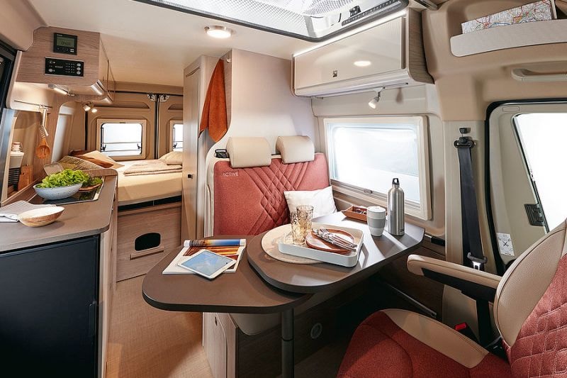 Voor de buitenkant van de compacte camper liggen elf verschillende lakkleuren klaar en met een optioneel Active-pakket voorziet Bürstner het geheel van aluminium details en her en der een Active-logo. Voor de bekleding kun je kiezen uit Kaluna, Pacific, Amora en het bruinleren Tundra Reef. Naast de indelingen met dwars- of lengtebed achterin komt er optioneel een slaapdak met verschillende bedmaten (tot 200 x 135 cm).