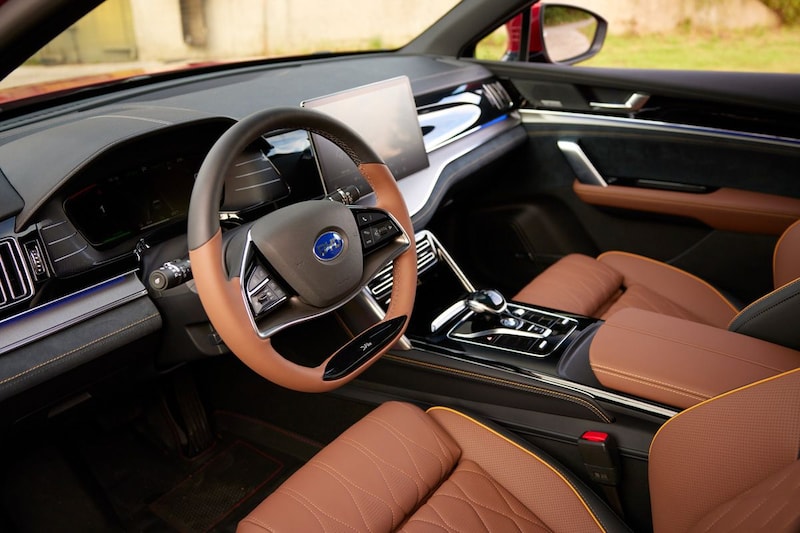 BYD perst de Tang Executive namelijk vol met nagenoeg alles dat je in een SUV van dit formaat kunt verwachten. Hij staat op 22-inch lichtmetaal, heeft een elektrisch bedienbare achterklep met 'voetbediening' en krijgt een groot glazen schuif-/kanteldak. Een 12,3-inch digitaal instrumentarium is standaard, hetzelfde geldt voor in twee kleuren uitgevoerde lederen bekleding, een verwarmbaar stuurwiel, over twee zones gescheiden klimaatregeling en elektrisch verstelbare voorstoelen (verwarmbaar en met ventilatie). Meer Tang-verwennerij komt in de vorm van een 360-graden camera, adaptieve cruisecontrol met Stop & Go-functie, dodehoekdetectie, Lane Departure Warning, Rear Cross Traffic Alert, een 12,8-inch draaibaar multimediascherm, een inductielader en een audiosysteem met 12 luidsprekers.