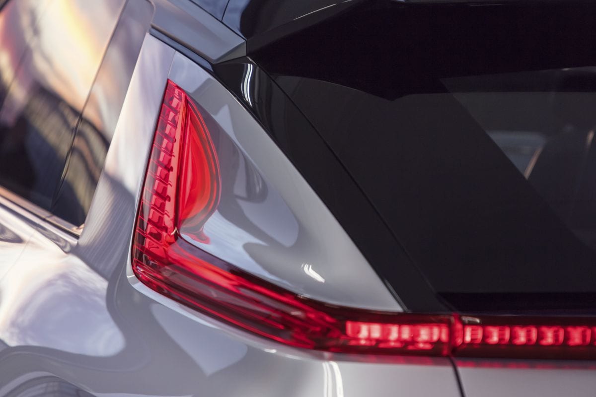Wie zich nogal bekeken voelt door de neuspartij met de immense grille, kan maar beter snel aan het beeld wennen. Cadillac zegt met gepaste trots dat dit het nieuwe gezicht voor de volgende generatie EV’s wordt. Het is in zeker zin een doorontwikkeling van de huidige neuspartijen, zoals die op de laatst vernieuwde Escalade prijkt. De rechtopstaande lichtbalk met leddagrijverlichting komt bijvoorbeeld bij beide auto’s terug. Het formaat van de gestreepte grille is echter veel groter dan bij Cadillacs die we tot nu toe kennen. Bij de concept-car wordt ook daar druk met led-verlichting gewerkt, net als bij bijvoorbeeld bij het centrale logo, maar het is nog niet duidelijk of dit de productielijn gaat halen. De koets van de Lyriq is verder gestroomlijnd getekend en komt uit bij een fraaie kont met opmerkelijke verlichting. Al ver in de C-stijl aan de zijkant begint de lichtbalk die als achterlicht dient. Met rechte hoeken en vouwen loopt deze helemaal door over de achterklep van de Lyriq. Iets lager en aan weerszijde van de achterkant komt daarbij nog een extra lichtbalk die wederom rechtopstaand getekend is. Het laadpunt wordt achter een groot paneel bij de voorwielen verstopt.