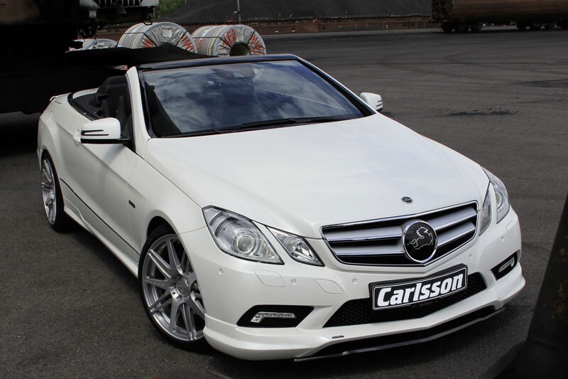Maar Carlsson laat het niet bij het aanbieden van een nieuwe ECU. Voor 2.317 euro voorziet de tuner de E Cabrio van een nieuw uitlaatsysteem. Een nieuwe voorspoiler kost 594 euro, een spoilerlip aan de voorzijde 629 euro. Nog eens 475 euro brengt een achterspoiler naar uw E-klasse Cabrio.