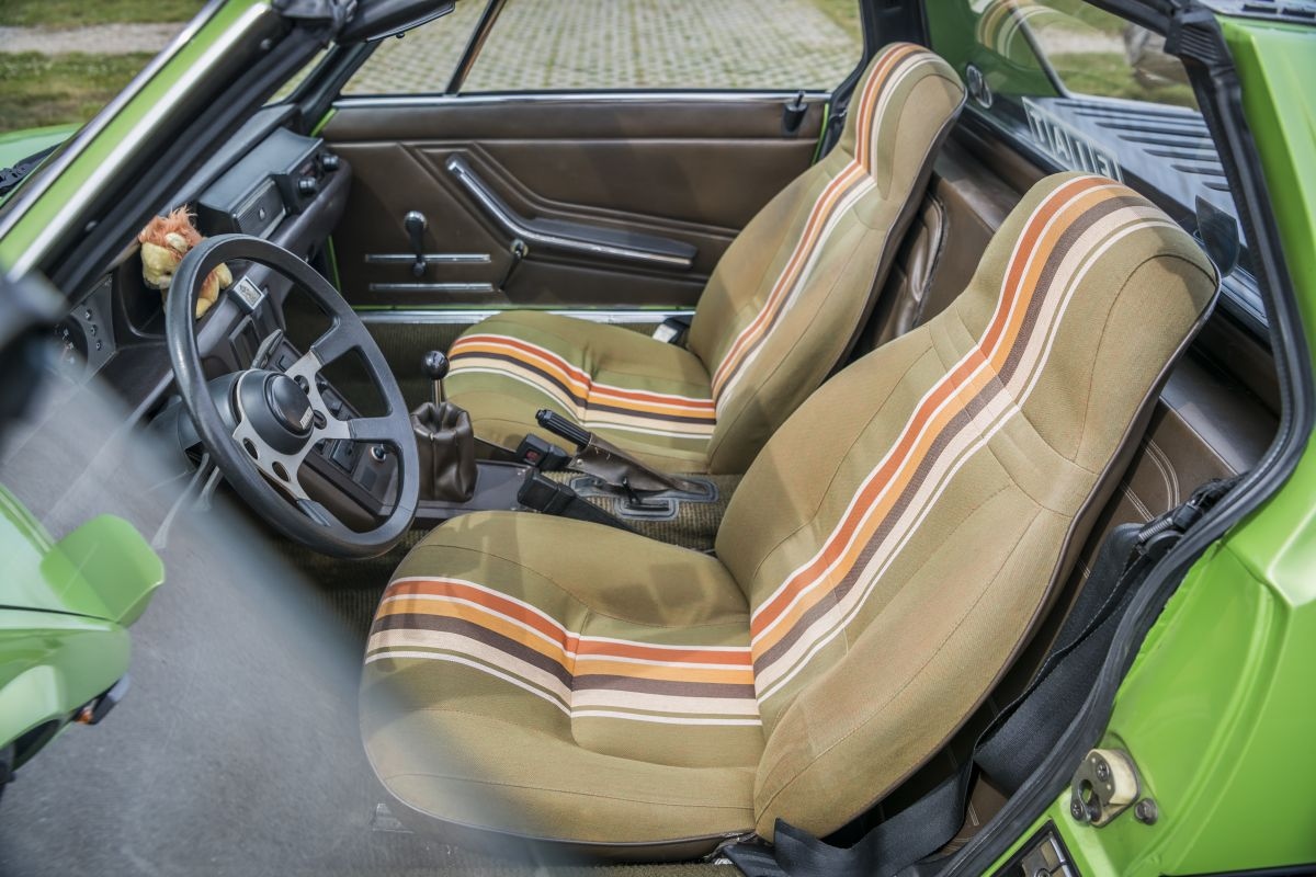 Zelfs de stoelen van de Fiat X 1/9 zijn nog hartstikke mooi.