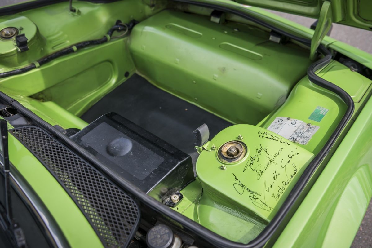 Voorin de X 1/9 de handtekeningen van de leden het ontwikkelingsteam, inclusief die van Gandini.