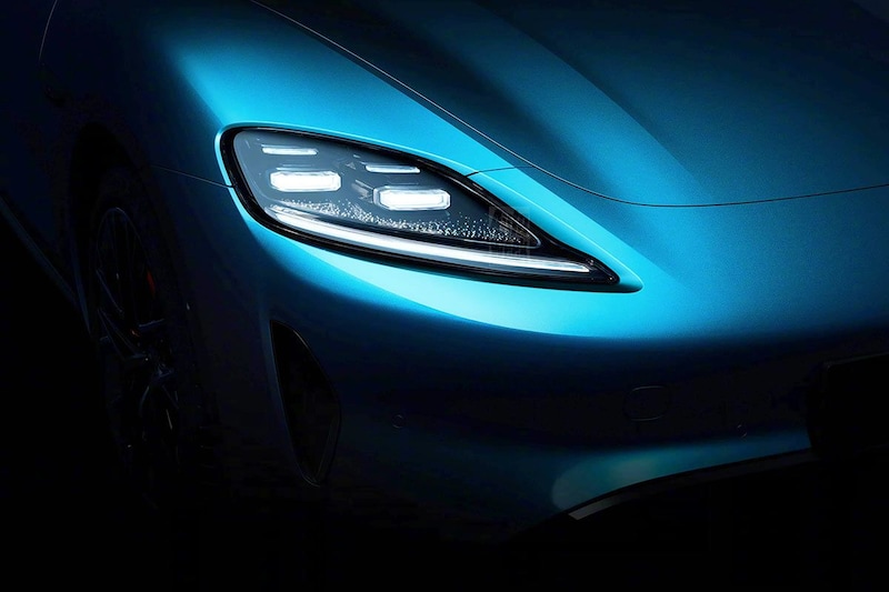 Op de nieuwe afbeeldingen zien we stukje van de achterzijde en het gros van de voor- en zijkant van de Z7. Wat blijkt? Zelfs de vorm en de invulling van de koplampen doen aan de Taycan denken. We zien lichtunits met aan de onderzijde een kleine uitloper. De lichtsignatuur ademt met zijn vier in de hoeken gehuisveste horizontale led-elementen Porsche Taycan.