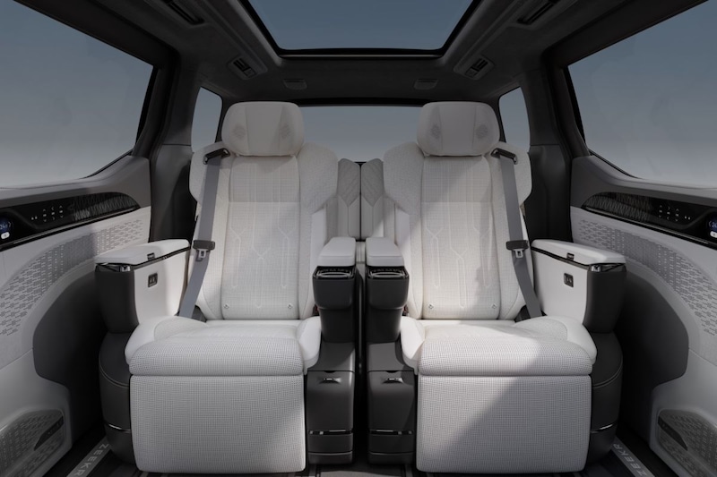 De Zeekr 009 is namelijk een luxe, elektrische MPV en het is maar de vraag of Geely in Europa een markt ziet voor een dergelijke auto. Evengoed weten we nu wel meer over de specificaties van het model. Dat hij 5,2 meter lang is wisten we al, maar dat hij ruim 2.800 kg weegt nog niet. Dat is voor een groot deel te danken aan de accu die erin zit: een 140 kWh groot exemplaar moet zorgen voor een bereik van dik 820 km volgens de vaak wat optimistische Chinese CLTC-testcyclus. Debet daaraan is de relatief gunstige stroomlijn van de auto. Hij scoort een Cw-waarde van 0,27, mede door een rond de A-stijlen gevouwen voorruit.