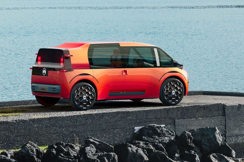 Technische specificaties zijn er net als concrete toekomstplannen. Citroën deelt wel iets over de technische kant van de auto. Zo staat de Citroën Elo op papier op een puur voor EV's ontwikkeld platform en heeft hij achterwielaandrijving. Verder weten we dat hij 1,7 meter hoog is. Dan het uiterlijk. De Elo heeft een busjesachtig silhouet en een dak dat aan de achterzijde net even lager is. Dat lagere dakdeel kan overigens open. Met de vele verlichte vleugeltjes en uitstulpingen doet de showauto enigszins denken aan de Citroën C5 Aircross. Eveneens opmerkelijk is de asymmetrische achterzijde met twee deurtjes. Over een busjesgehalte gesproken.
