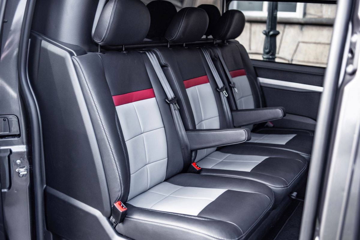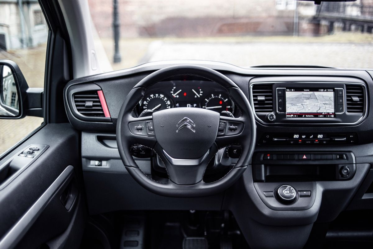Citroën geeft de Jumpy C-Series onder meer met leer beklede deurpanelen, een lederen pookhoes (alleen in combinatie met handgeschakelde versies) terwijl de ventilatieroosters worden afgewerkt met rode details. Lederen stoelbekleding ontbreekt niet, evenals speciale vloermatten met C-Series-logo en rode stiksels. De bestuurdersstoel is uitgevoerd met een massagefunctie. Wie ook de bijrijder wil verwennen met een zetel met massagefunctie moet € 250 bijbetalen.
