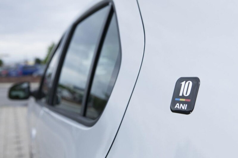 Uiteraard kunnen feestelijke badges niet ontbreken, vandaar dat Dacia op de C-stijlen 10th Anniversary-emblemen plakt. Opvallend detail: de bediening van de voorste elektrische ramen is nu gewoon in de deuren te vinden, voorheen moest hiervoor naar de middenconsole worden uitgeweken. De achterste zijruitjes moeten zo te zien wel gewoon via de middenconsole worden bediend.