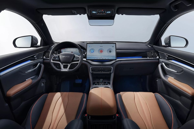 Je mag zelfs ‘gratis’ kiezen of je je kunstlederen bekleding in zwart of bruin wilt. Aan de buitenzijde valt er ook wat te kiezen, maar hier heeft dat wel invloed op de prijs. Het stemmige ‘Time Grey’ is standaard, voor één van de andere vier metallic-tinten tel je €1.100 neer. Andere manieren om de prijs op te drijven vinden we alleen in de accessoirehoek, waar BYD €1.195 vraagt voor een afneembare trekhaak en €145 voor dakdragers.