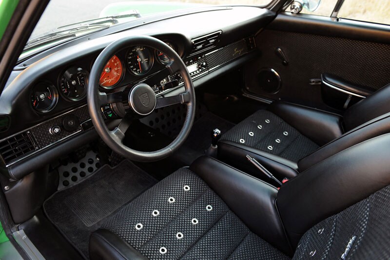 Maar dat is niet geheel onterecht, het bedrijf stript de donorauto namelijk helemaal totdat alleen het chassis overblijft. Dat wordt volledig behandeld en van roestbescherming voorzien. De originele carrosserie wordt bijna helemaal vervangen door onderdelen gemaakt van koolstofvezel. Alleen de deuren blijven van staal, dat heeft volgens Singer te maken met de veiligheid bij een zijwaartse aanrijding. De velgen zijn nieuw gegoten 17 inchers, maar het design is wel dat van de klassieke Fuchs velgen. Ook het interieur wordt helemaal opnieuw in elkaar gezet, maar hier wordt de sfeer van oude tijden juist wel in ere gehouden. Er wordt rijkelijk gebruik gemaakt van leder en een klassiek stuurwiel zoals op de RSR zat behoort tot de mogelijkheden. Ook de originele Blaupunkt Frankfurt radio blijft behouden, hoewel die wel via een weggewerkte aansluiting met je iPod kan samenwerken en zelfs bluetooth behoort tot de mogelijkheden.