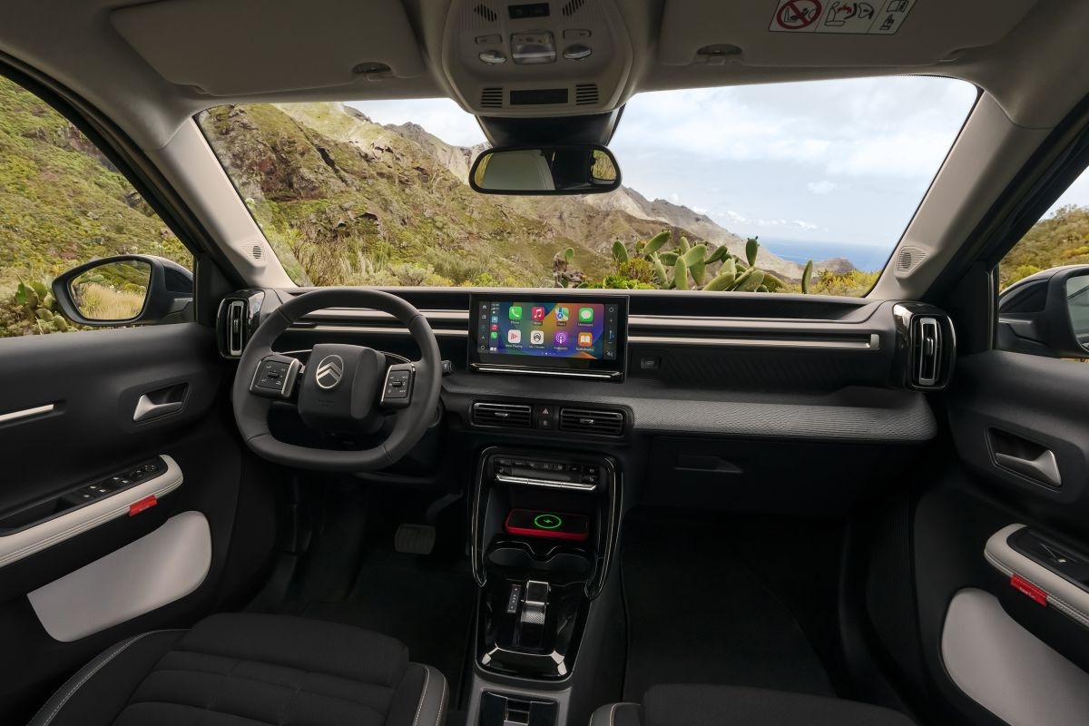 Met zijn horizontaal georiënteerde dashboard, verticaal georiënteerde ventilatieroosters en gezellige stoffen afwerking vertoont het binnenste van de C3 Aircross veel overeenkomsten met dat van de reguliere C3. Ook hier zien we het hoog op het dashboard geprojecteerde informatiedisplay terug, Citroëns kruising tussen een head-updisplay en een wellicht fraaier, maar ook duurder informatiedisplay achter het stuur.