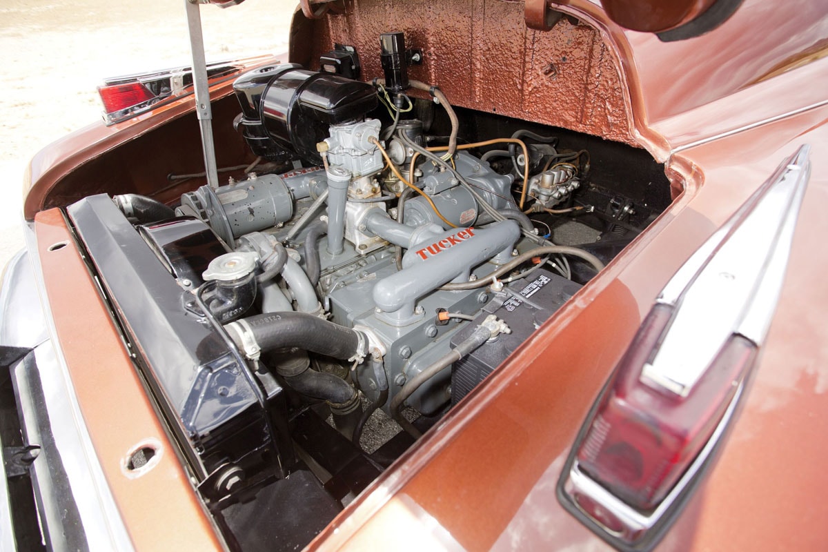 De Tucker 48 kreeg uiteindelijk een 5.5 zescilinder boxer met 168 pk van het bedrijf Air Cooled Motors. Die krachtbron was oorspronkelijk bedoeld voor een helikopter, maar Tucker zag er wel brood in. Zijn engineers bouwden de motor om van lucht- naar waterkoeling en modificeerden de motor voor het gebruik in een auto. Verder was de Tucker 48 voor zijn tijd behoorlijk vooruitstrevend. Allereerst vallen vooral de drie koplampen aan de voorkant op. De middelste koplamp draait mee met het stuur en fungeert als bochtverlichting. Daarnaast beschikte de 48 over crashbescherming rondom en een geïntegreerde rolbeugel in het dak. Ook was de voorruit gemaakt van glas dat niet uit elkaar spatte bij een aanrijding. Verder valt op dat de deuren iets doorlopen in het dak om het in- en uitstappen te vergemakkelijken.