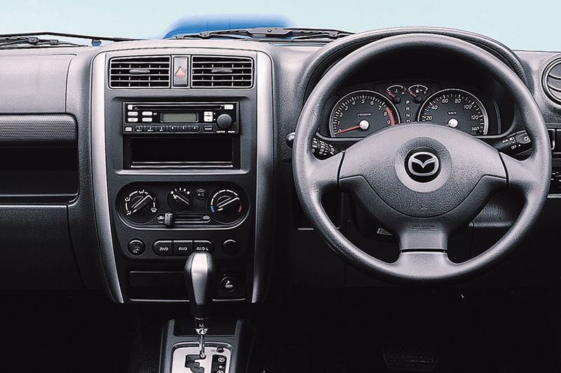 In deze rubriek behandelden we eerder namelijk al de Mazda Carol, in feite een kloon van de Suzuki Alto. Ook verkocht Mazda de auto die wij als de eerste generatie Suzuki Ignis kenden als ietwat ongelukkig geheten Laputa, werd de Suzuki Lapin door Mazda als Spiano aan de man gebracht en verkocht laatstgenoemde de eerste én tweede generatie Suzuki Vitara als Proceed Levante. Daarnaast waren er Mazda's die als Suzuki werden verkocht, denk aan de Autozam AZ-1 en de Suzuki Cara. Goed, terug naar de Jimny, want we hadden beloofd het daarover te hebben. Ook die kleine offroadheld werd door Mazda als leuk en potentieel succesvol genoeg bestempeld om een Mazda-badge op zijn neus gedrukt te krijgen.