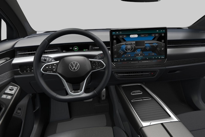 Wat betreft de lakkleur houdt Volkswagen het lekker overzichtelijk: alleen het grondverf-achtige Moonstone Grey is standaard. Voor overige kleuren betaal je €890, het prachtige ‘Aquamarine Blue’ kost zelfs €1.090 extra. 19-inch wielen zijn standaard, 20 inch is optioneel. Nog grotere wielen zijn echter erg stoeprandgevoelig én zorgen bij een EV voor een aanmerkelijk hoger verbruik, dus laat die optie gerust liggen.