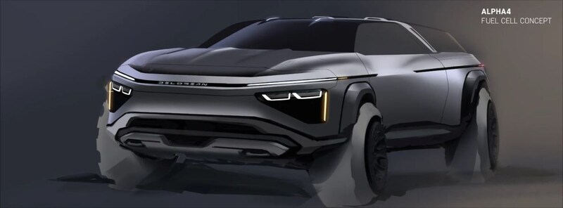 2013 had het jaar moeten zijn waarin DeLorean een elektrische SUV (foto's 28 t/m 32) met vleugeldeuren op de markt brengt die zijn leven op de tekentafel als een modulaire pick-up begint (foto's 23 t/m 27). De Alpha4 is niet zomaar een EV, maar een elektrische SUV met een brandstofcel aan boord. De Alpha4 heeft plek voor zeven tot acht inzittenden.