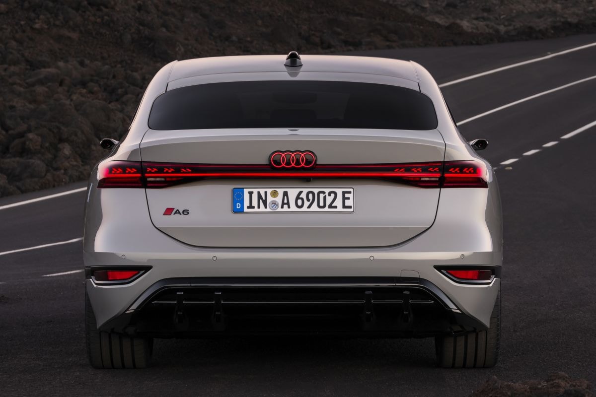De zwarte inzetstukken onderop de deuren, die volgens Audi de locatie van de batterij benadrukken – maar vooral aanwezig zijn om het zeer hoge visuele gewicht van deze A6 te verhullen - reiken tot aan de achterste reflectoren. Het zijn weinig inspirerende, te zacht en energieloze zwarte graphics.