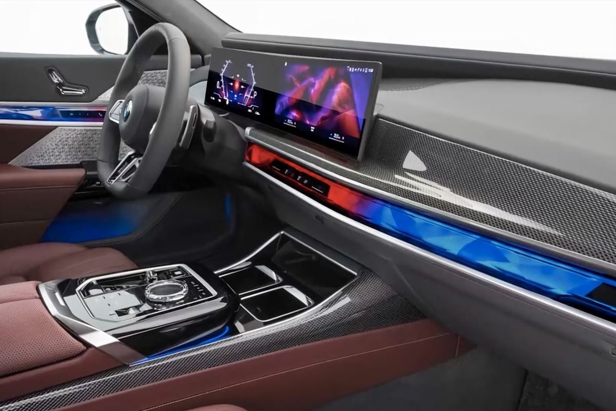 De nieuwe BMW 7-serie heeft een gigantsche uitklapmonitor achterin.