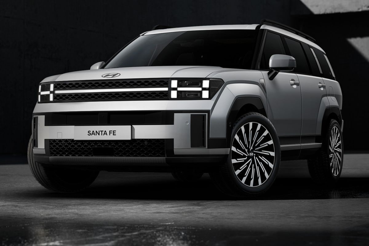 De gedurfde en krachtige identiteit van de gloednieuwe Santa Fe, zal niet ieders smaak zijn. Goed zo. Kleur bekennen is belangrijk. De hoekige vorm en lange wielbasis van het nieuwe model vallen op, evenals de hoge motorkap, H-vormige koplampen en scherp gedefinieerde spatborden. Die H-vormige koplampen komen uit dezelfde familie als die van de Ioniq 5, maar staan op zichzelf. Een slap aftreksel van de grote vijfdeurs is deze SUV allerminst.