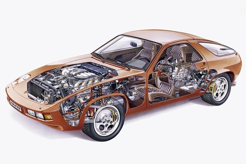 Net als de 924, 944 (en latere 968) was de Porsche 928 er volgens het transaxle-principe, waarbij de versnellingsbak bij de achteras is geplaatst.