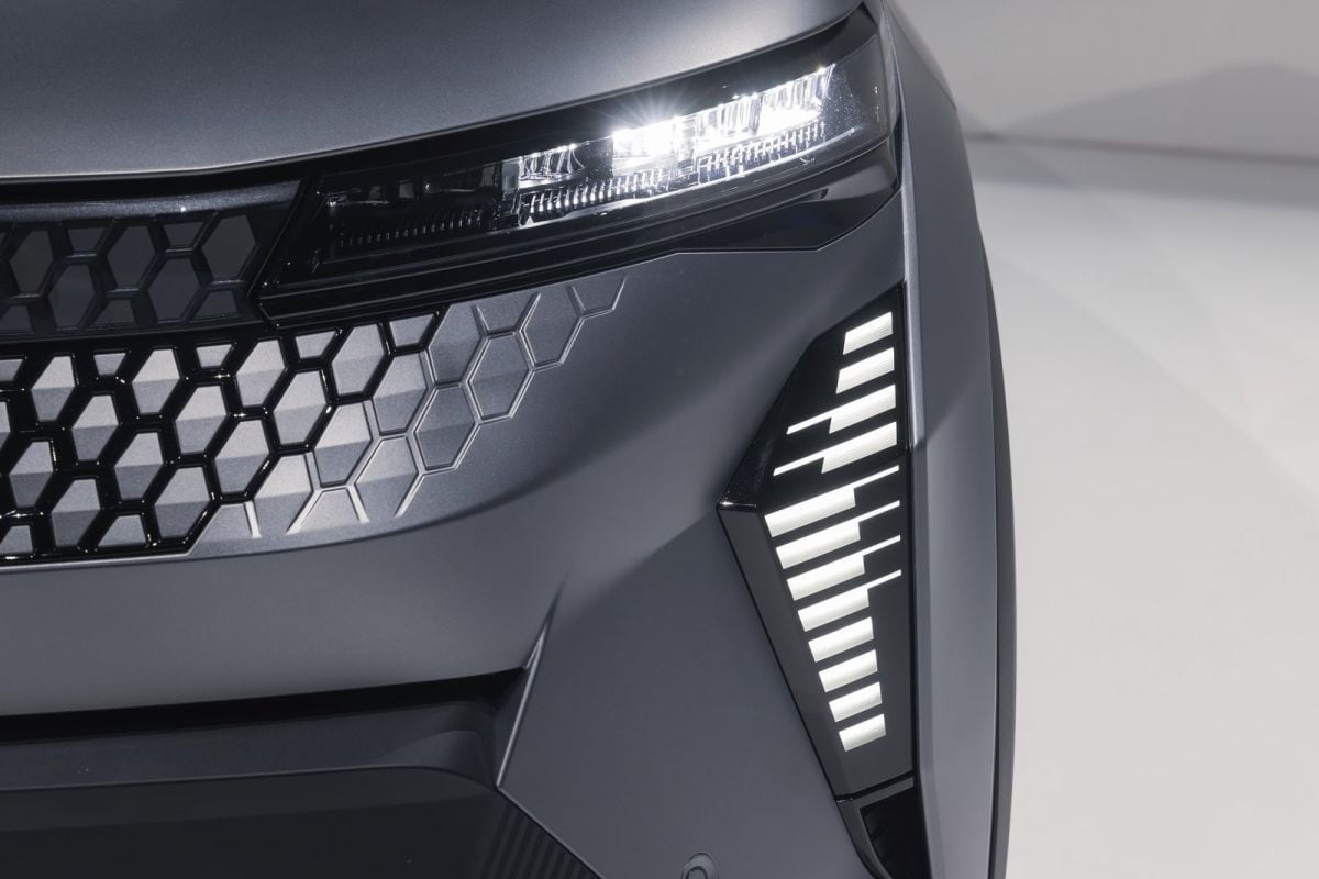 De Scenic E-Tech beschikt over opvallend veel patronen die soms markant en een andere keer minder opvallend zijn ingezet. Vanaf de neus worden ze consistent door het gehele ontwerp doorgevoerd.